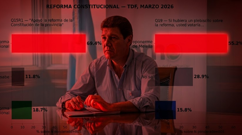 Una reciente encuesta de opinión pública en Tierra del Fuego muestra un amplio rechazo al proyecto de reforma constitucional impulsado por el gobernador Gustavo Melella. Según el relevamiento, solo el 18,7% de los consultados respalda la iniciativa, mientras que el 69,4% se manifiesta en contra.